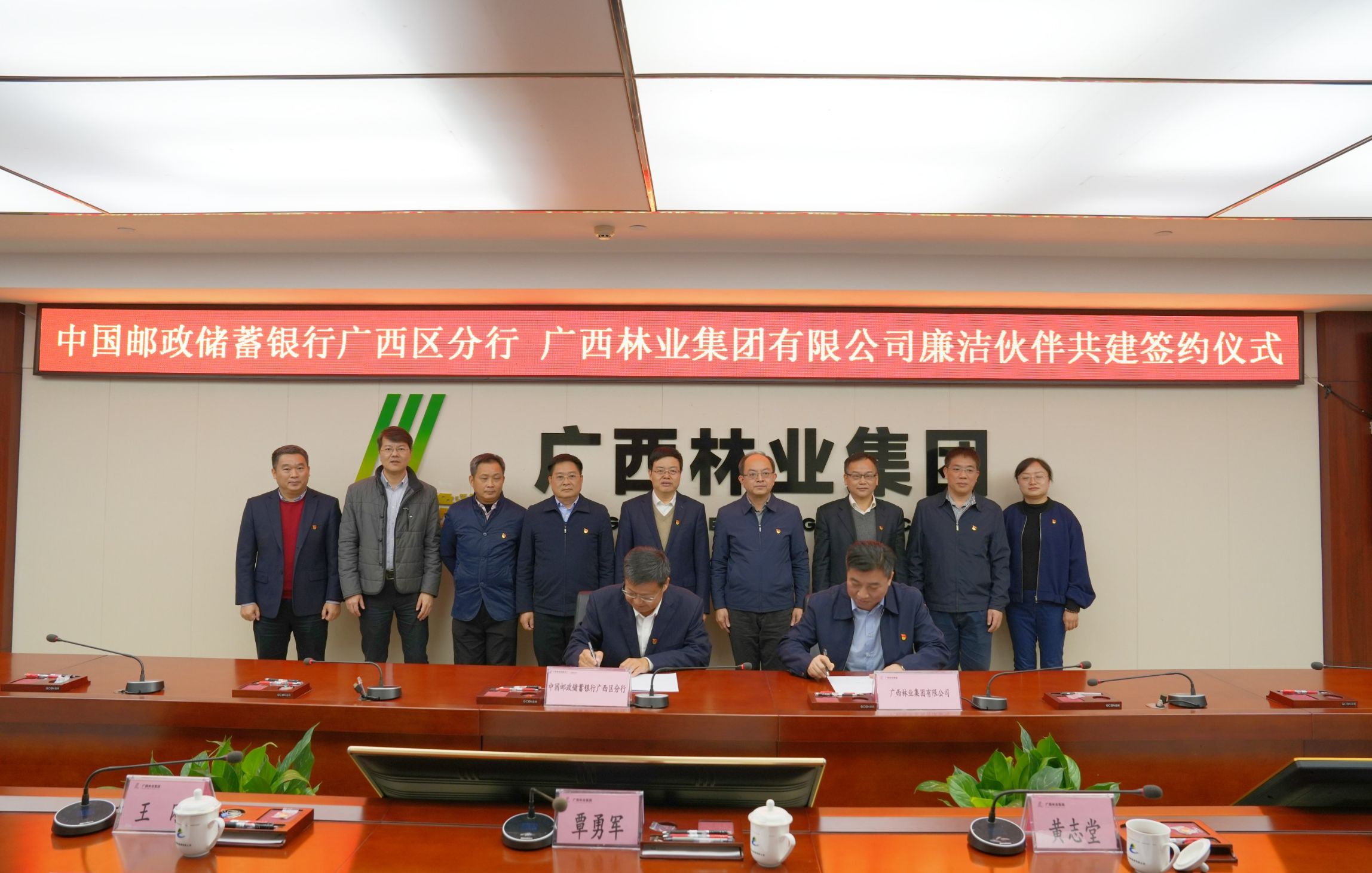 郵儲銀行廣西區(qū)分行紀(jì)委辦公室、金融部、南寧分行相關(guān)負(fù)責(zé)人,廣林集團(tuán)辦公室、自治區(qū)紀(jì)委監(jiān)委駐廣林集團(tuán)紀(jì)檢監(jiān)察組、財(cái)務(wù)部相關(guān)負(fù)責(zé)人員簽約儀式。